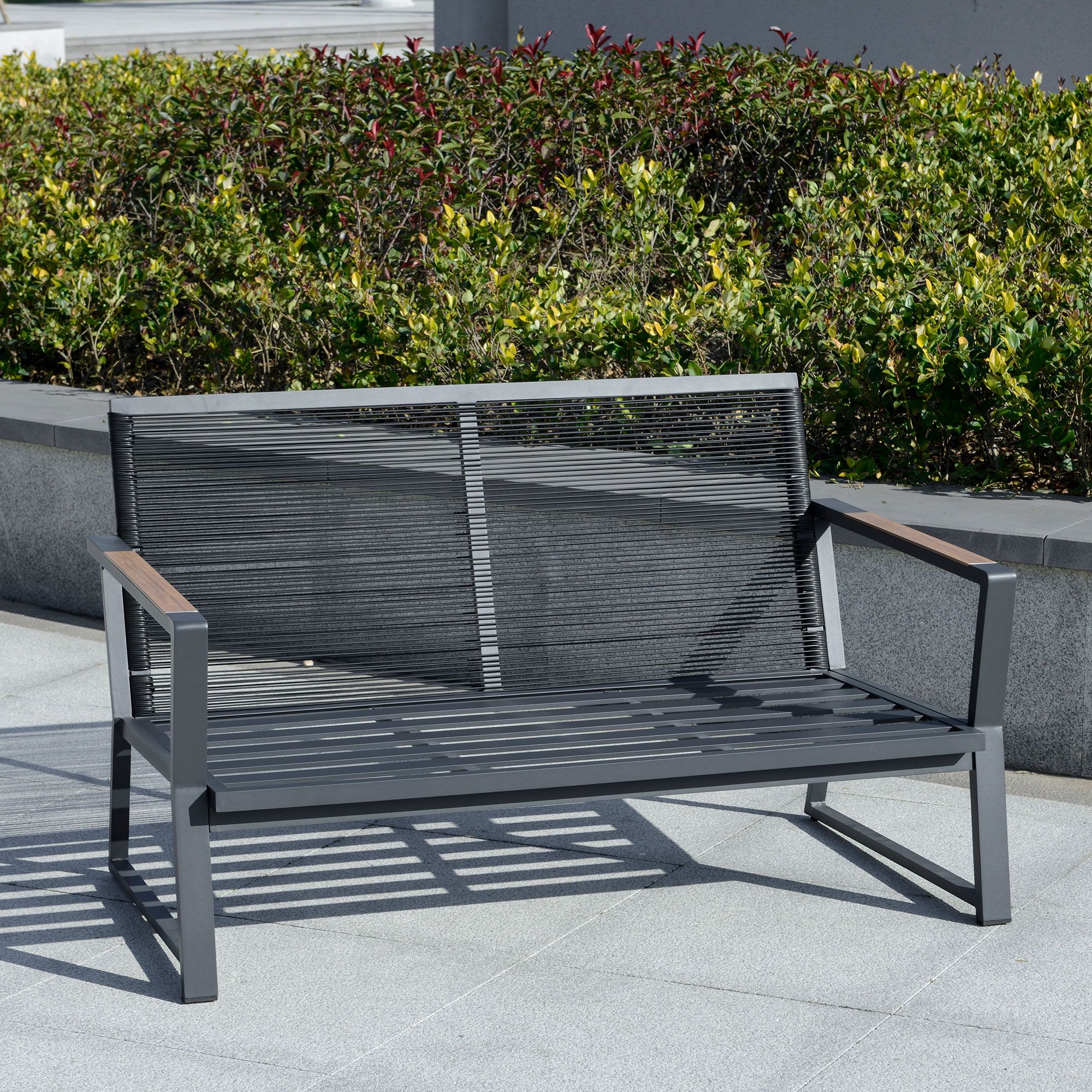 CHIC FURNITURE SET: This four-piece set with a double sofa, two single sofas, and a coffee table is ideal for taking a break by yourself or catching up with friends in the sun. The armrests come with a wood grain finish that gives your patio, garden, poolside, and balcony a natural feel.