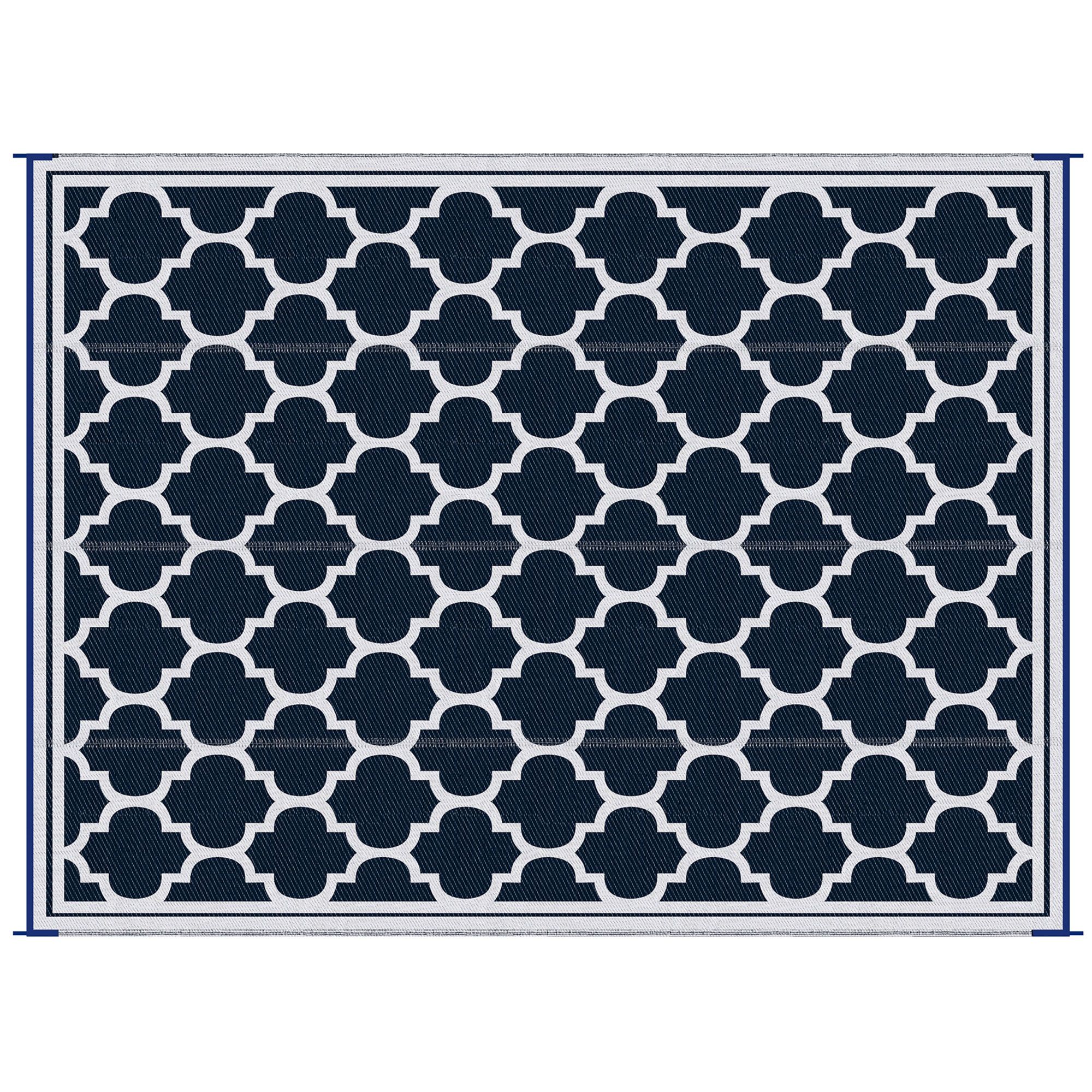 Camp out on the carpet with Outsunny. This waterproof carpet is a reversible outdoor rug designed to handle dirt. Outdoor-ready, this outdoor rug cleans up fast; sweep it, spray it, wipe it, or wave it; its powerful plastic fibers stay dry and don't saturate. Keep our rug in the camper, RV, or car. It's excellent for camping, beach barbecues, patio picnics, or anywhere you need it outside. The color is reversible, meaning you get two rug patterns in one package. Get out, get comfy, get Outsunny.