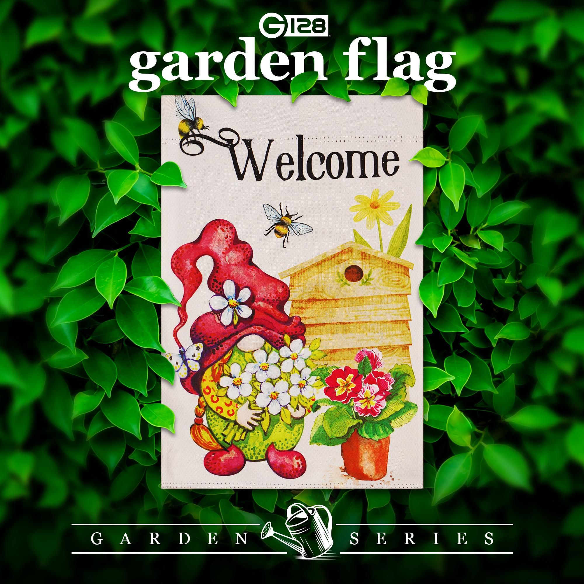 Garden Flag Welcome Gnome with Flowers 12x18 inch Blockout Fabric Double Sided Garden Flag Welcome Gnome with Flowers 12x18 inch Blockout Fabric Double Sided Garden Flag Welcome Gnome with Flowers 12x18 inch Blockout Fabric Double Sided