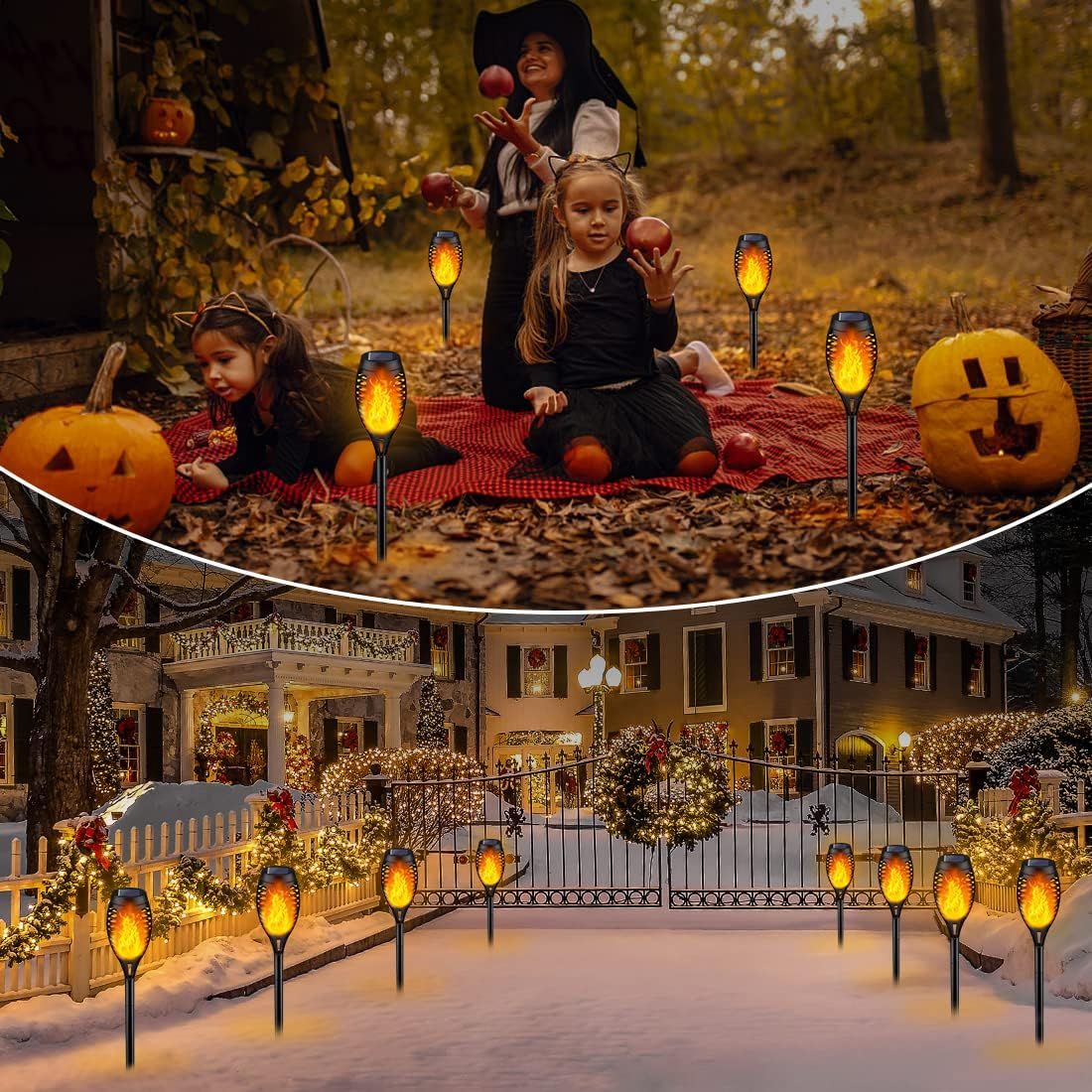 3.Solar-powered torch lights with realistic flickering flame effect