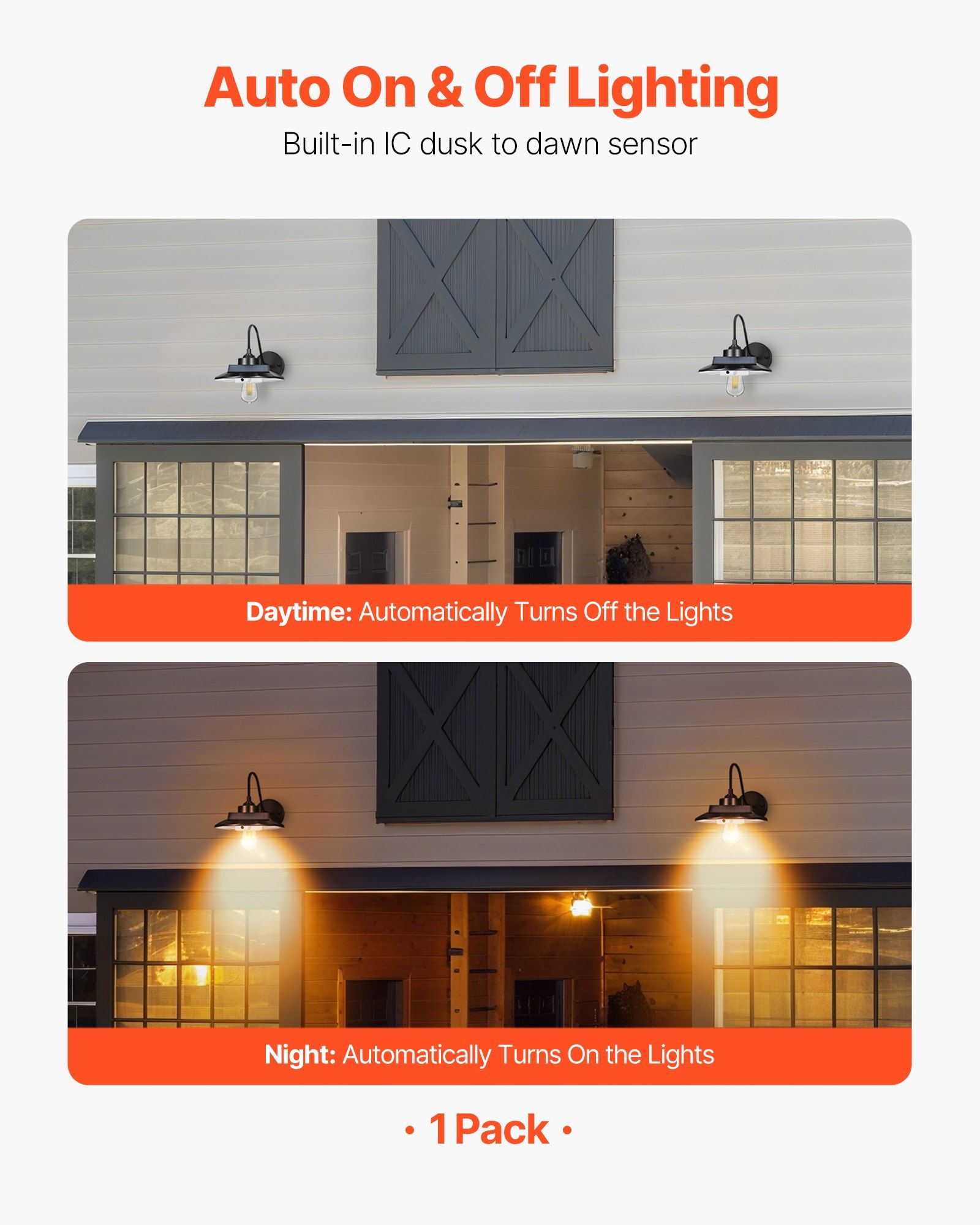 Home > Solar Outdoor Barn Light, 3 Lighting Modes and Motion Sensor, 1-Pack Gooseneck Light Fixture,Farmhouse Wall Sconce, with E26 Bulb Compatible