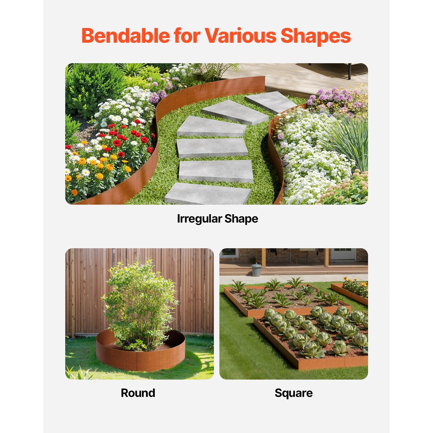 2.Flexible & Bendable: The steel landscape edging is highly flexible and can be easily bent to fit your garden's unique shape, whether it's square, circular, or an irregular layout. It bends effortlessly without breaking, giving you a tailored fit for any garden design.