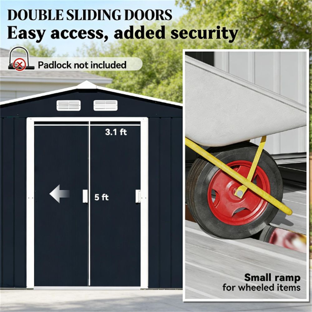 - Large inner space for storing tools bicycle, garden tools, lawn care equipment and more