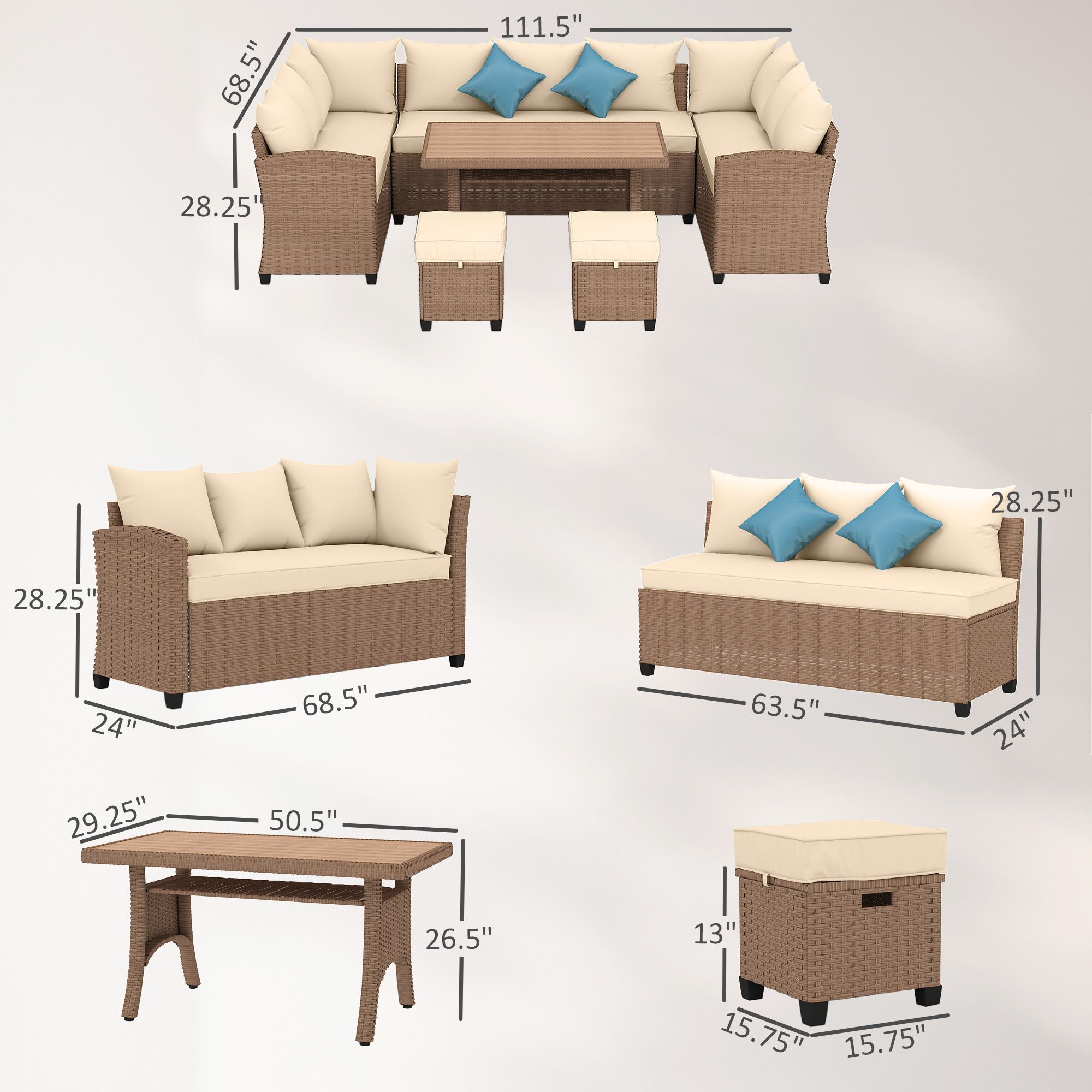 If you have a big family or love putting on outdoor parties, extra-large seating is on your checklist. Our outdoor furniture set offers enough space for eleven. Its sectional design offers you options with three couches, two ottoman chairs, and a big dining table, all capable of being rearranged as you see fit. The set is fully cushioned for indoor-level comfort, and its PE wicker was hand-woven for furniture that's easy on the eyes with an all-weather design. Get out, get comfy, get Outsunny.